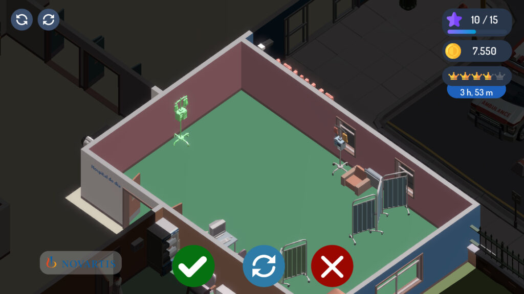 Teaching about Rheumatology while managing a clinic all in a gamified environment for Novartis, for iOS and Android
